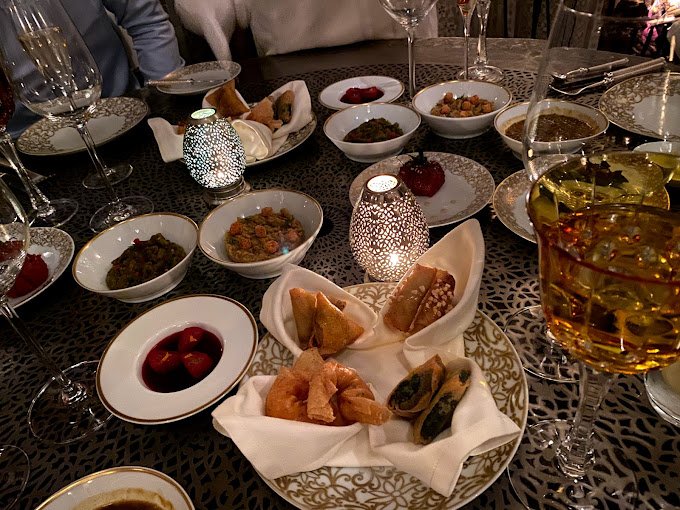 Les fleurons de la gastronomie marocaine se dégustent dans un cadre à la hauteur de l’expérience : Royal. Hauts plafonds, œuvres d’art originales, linge griffé, couverts, verrerie et mélopées langoureuses des joueurs de luth et de oud : l’élégance omniprésente, n’a qu’un seul objectif : porter le plaisir à son paroxysme.